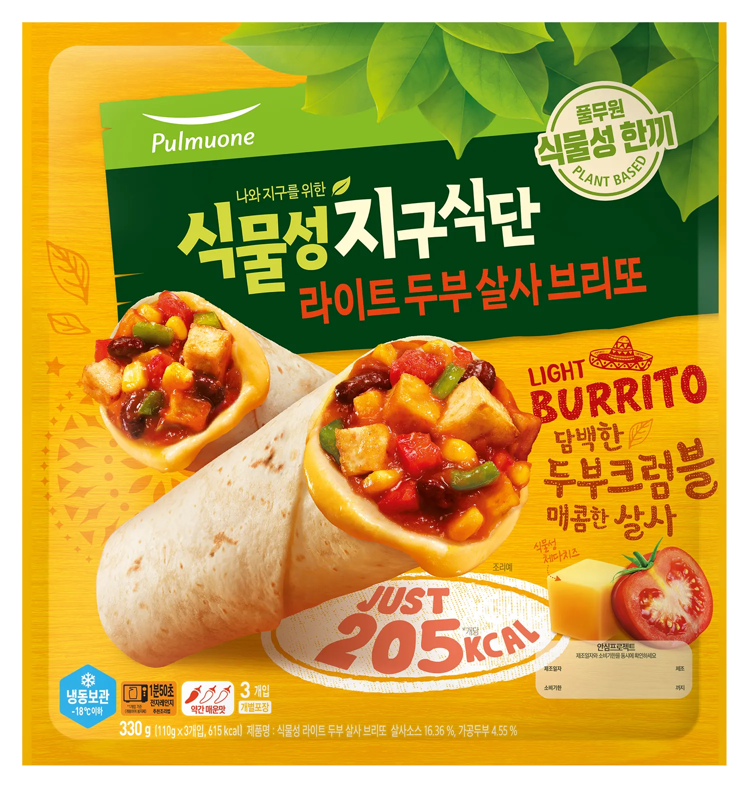 100% 식물성 재료로 가득 채워 칼로리가 낮으며(불고기맛 기준, 브리또 Top3 제품 대비 32% 낮은 칼로리) 식사 대용 뿐만 아니라 식단 조절용으로도 즐길 수 있는 브리또랍니다