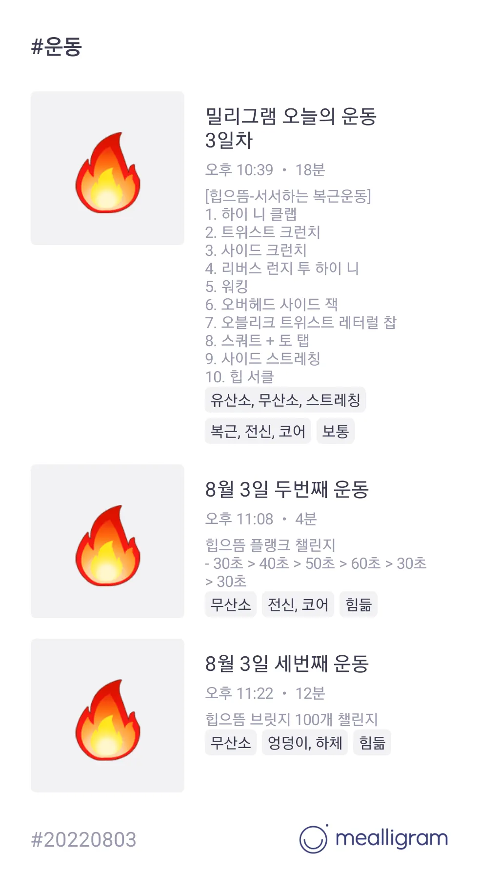 어제 술을 마셔서 오늘 물을 좀 더 많이 먹어주었고 다시 건강 식단으로 돌아오는 데 집중했구요, 또 하체 운동이 쉽다고 생각했는데 오늘 다리에 알이 배겼더라구요ㅎㅎ 이렇게 매일 조금씩 몸이 변화되는 과정을 느끼니까 뿌듯합니다! 서서하는 복근운동과 더불어서 추가적으로 플랭크와 브릿지 챌린지를 진행했어요-! 혹시 추가 운동을 원하신다면 이것도 함께하시기를 추천드립니당 오늘도 모두들 잘 해내셨어요 짱짱맨