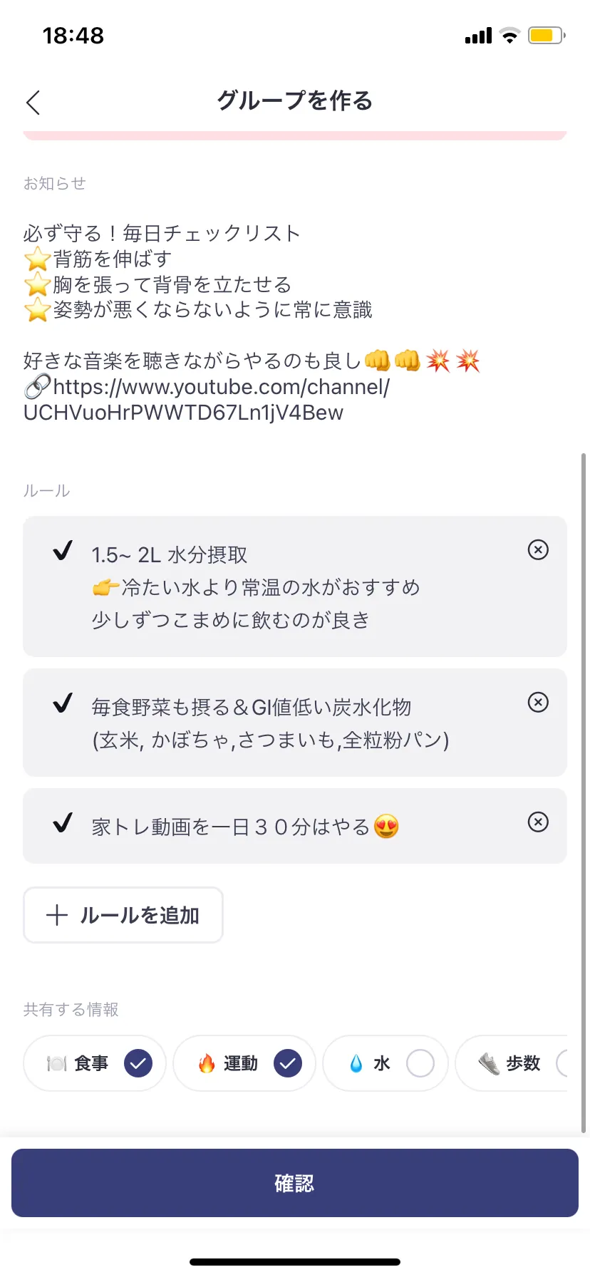 2. グループ名, お知らせ, ルールを決めましょう。共有する情報はグループ作成後変更できないので注意してください