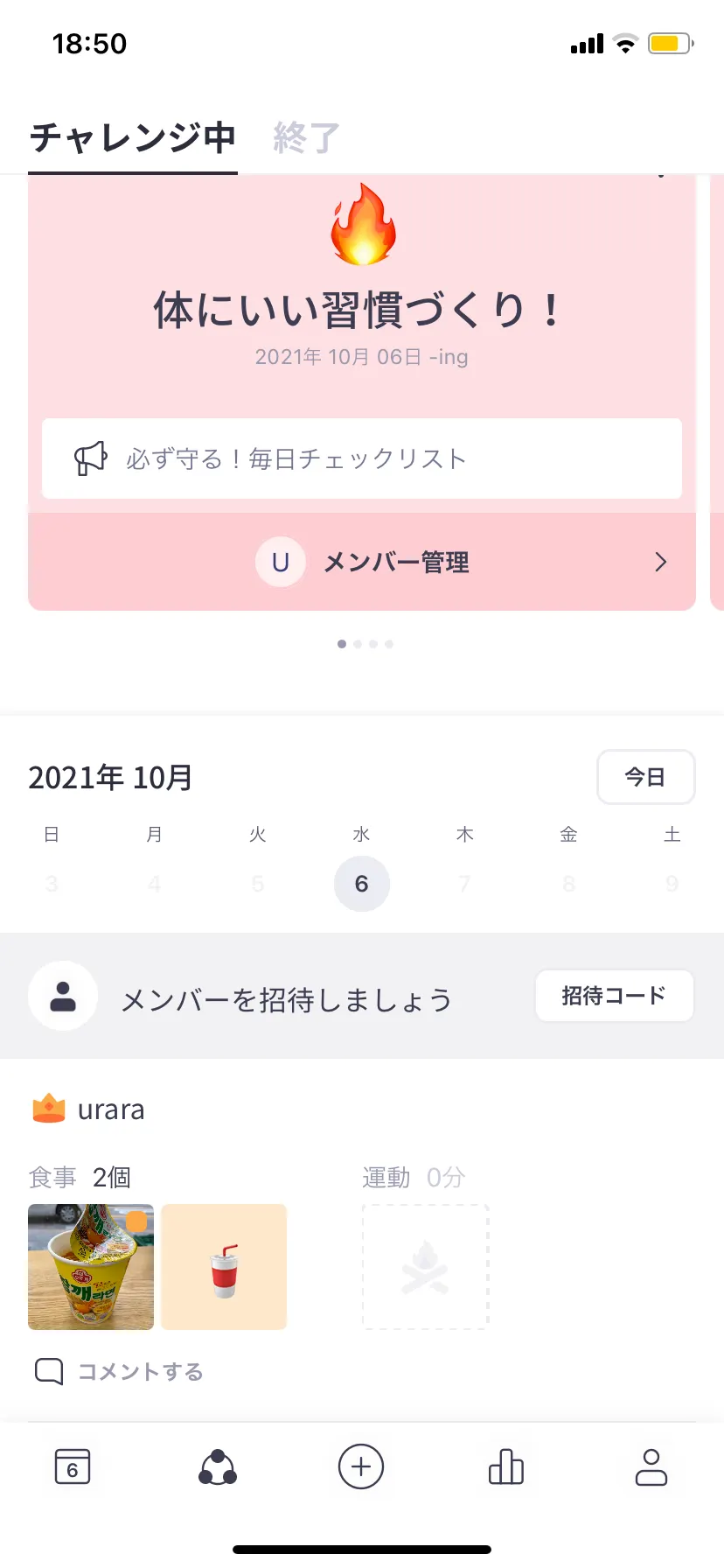 3. ’招待コード’を押して、友だちにコードをシェア