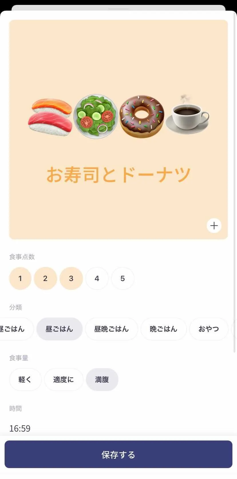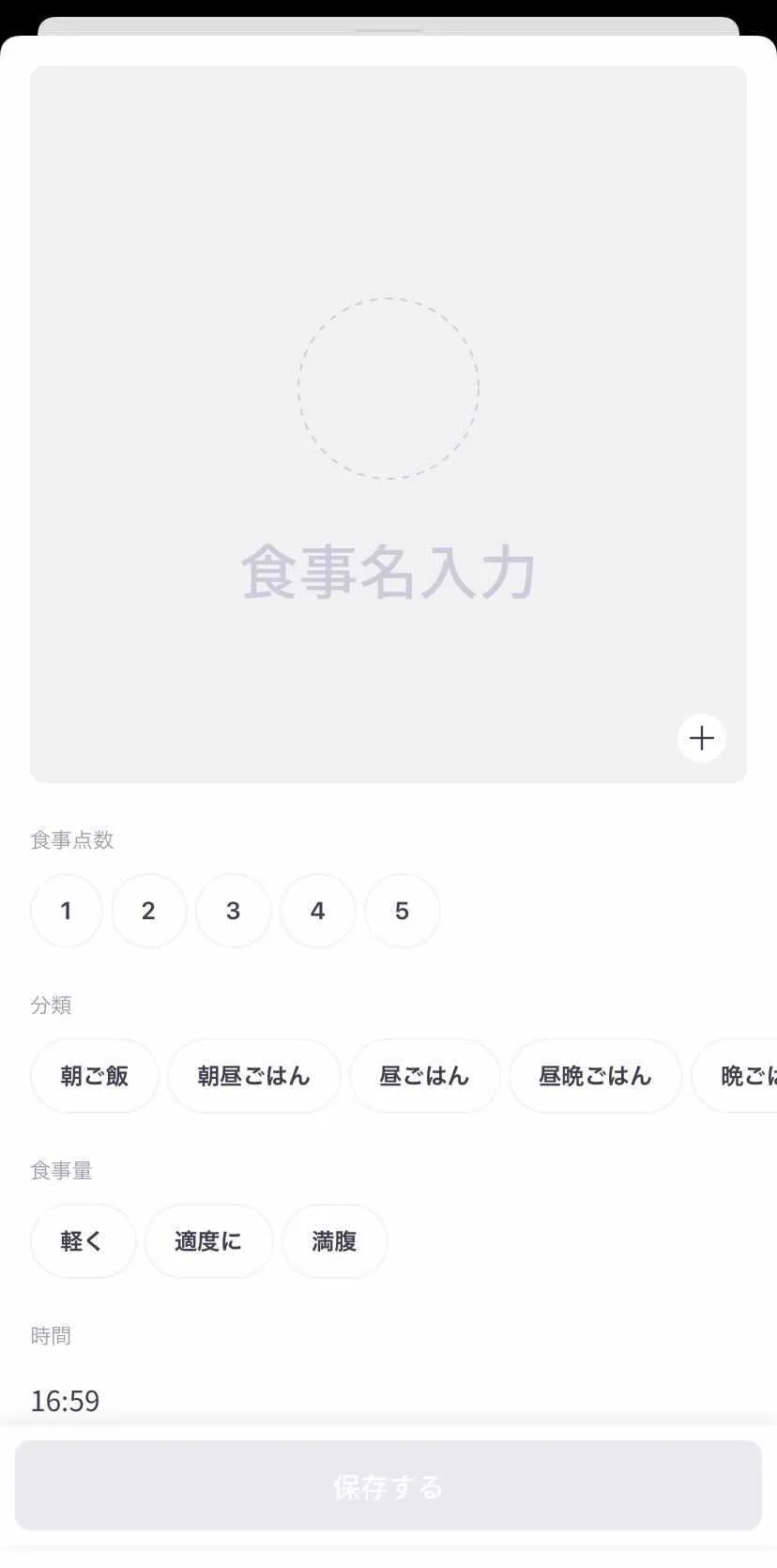 [食事名を入力]上の◯を押すと絵文字を入力できます