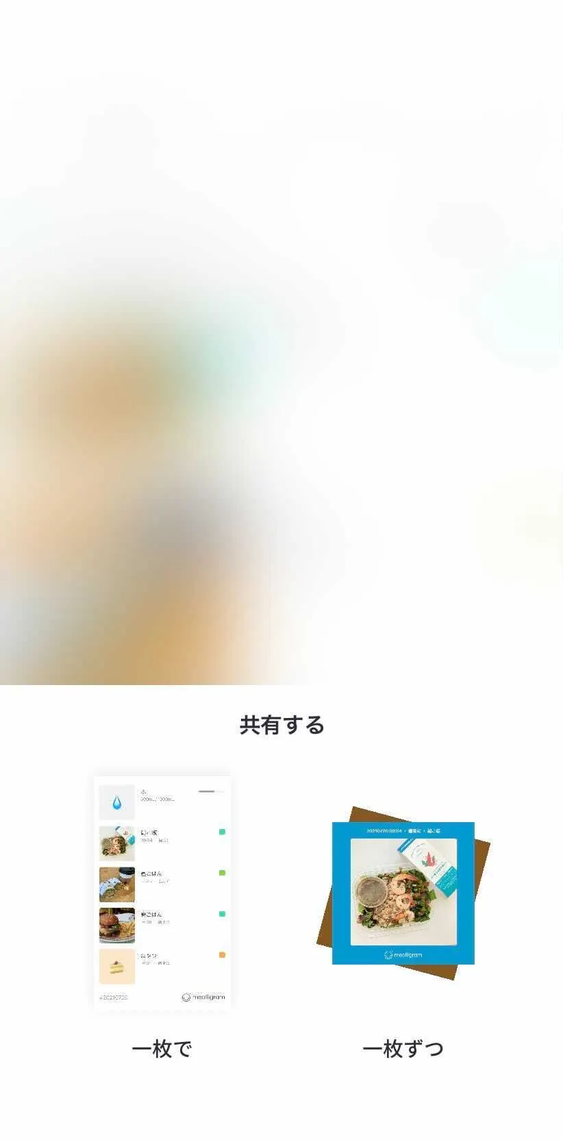 今日の食事を「まとめて一枚」もしくは「一枚ずつ」画像保存できます