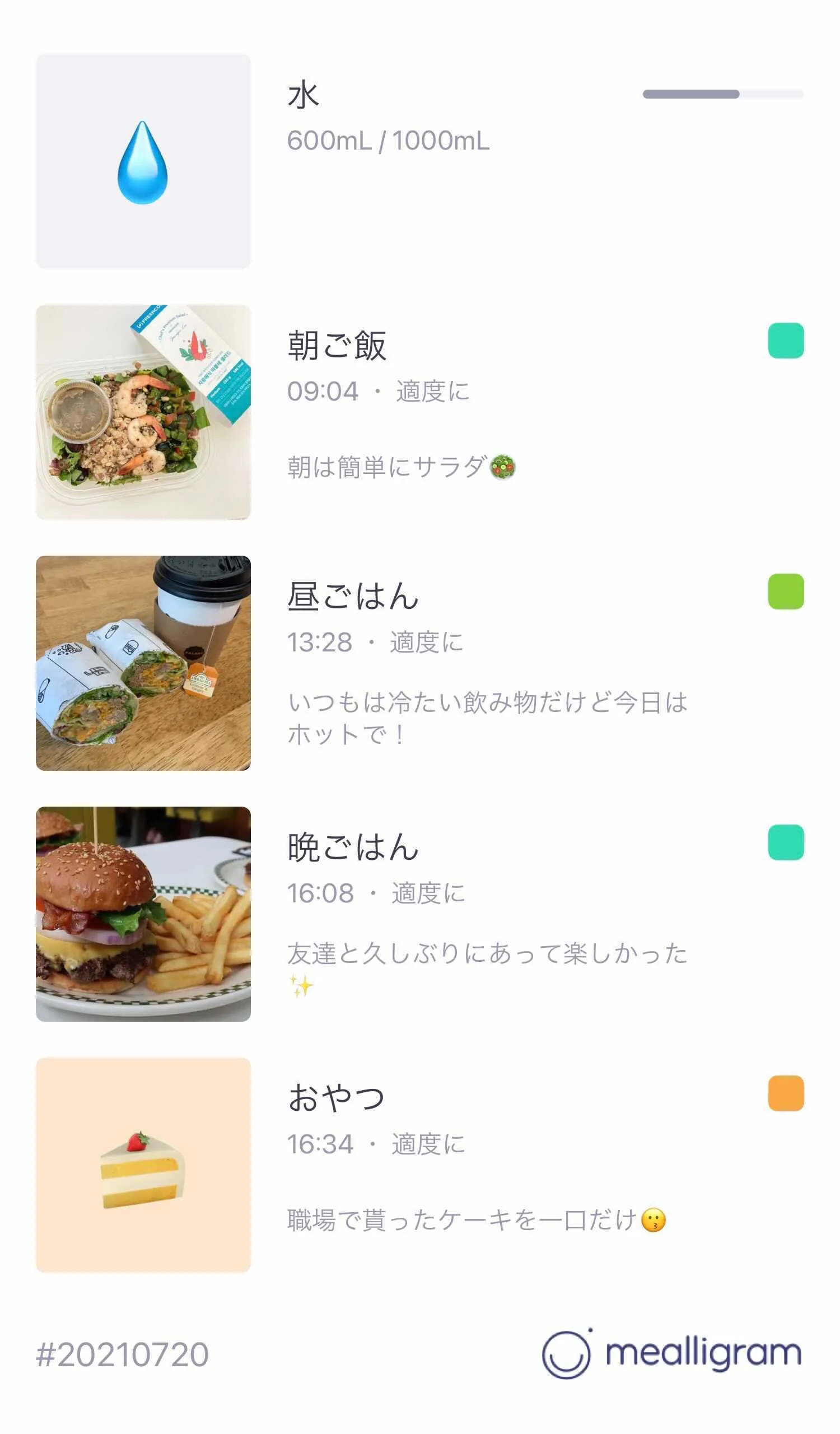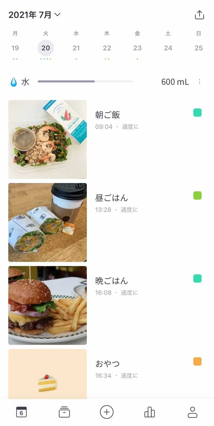ダイエットを始めた頃は1つずつカロリーを計算してメモしていたんですが、最近は自分がちゃんと意識して食べているか、高カロリーなものを食べすぎていないかだけを記録するようになりました。それでも食べるたびに記録をする習慣のおかげで必要以上に食べ過ぎることは無くなりました!3ヶ月間アプリに記録しながら5キロ減量できています